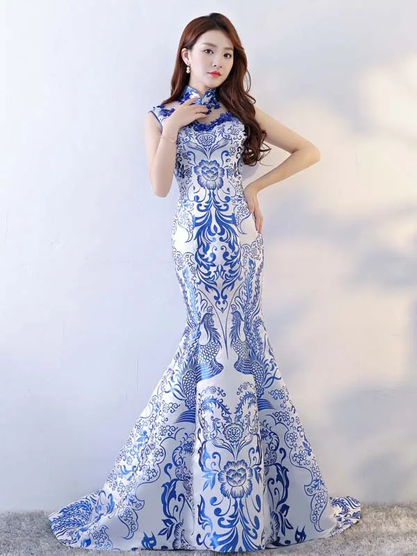Fishtail Blue and white Cheongsam Porcelain China print dress
