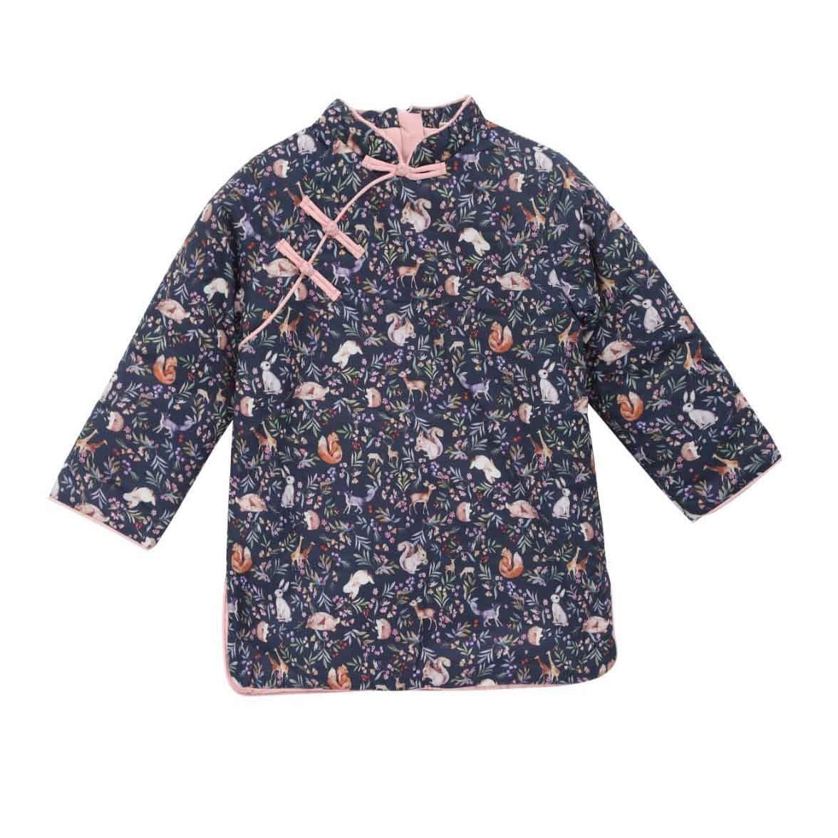 Chinese-style blue cotton Qipao coat for girls