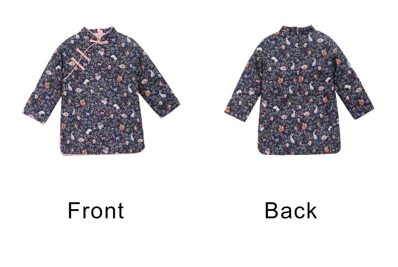 Unique Chinese-style blue cotton Qipao coat for girls